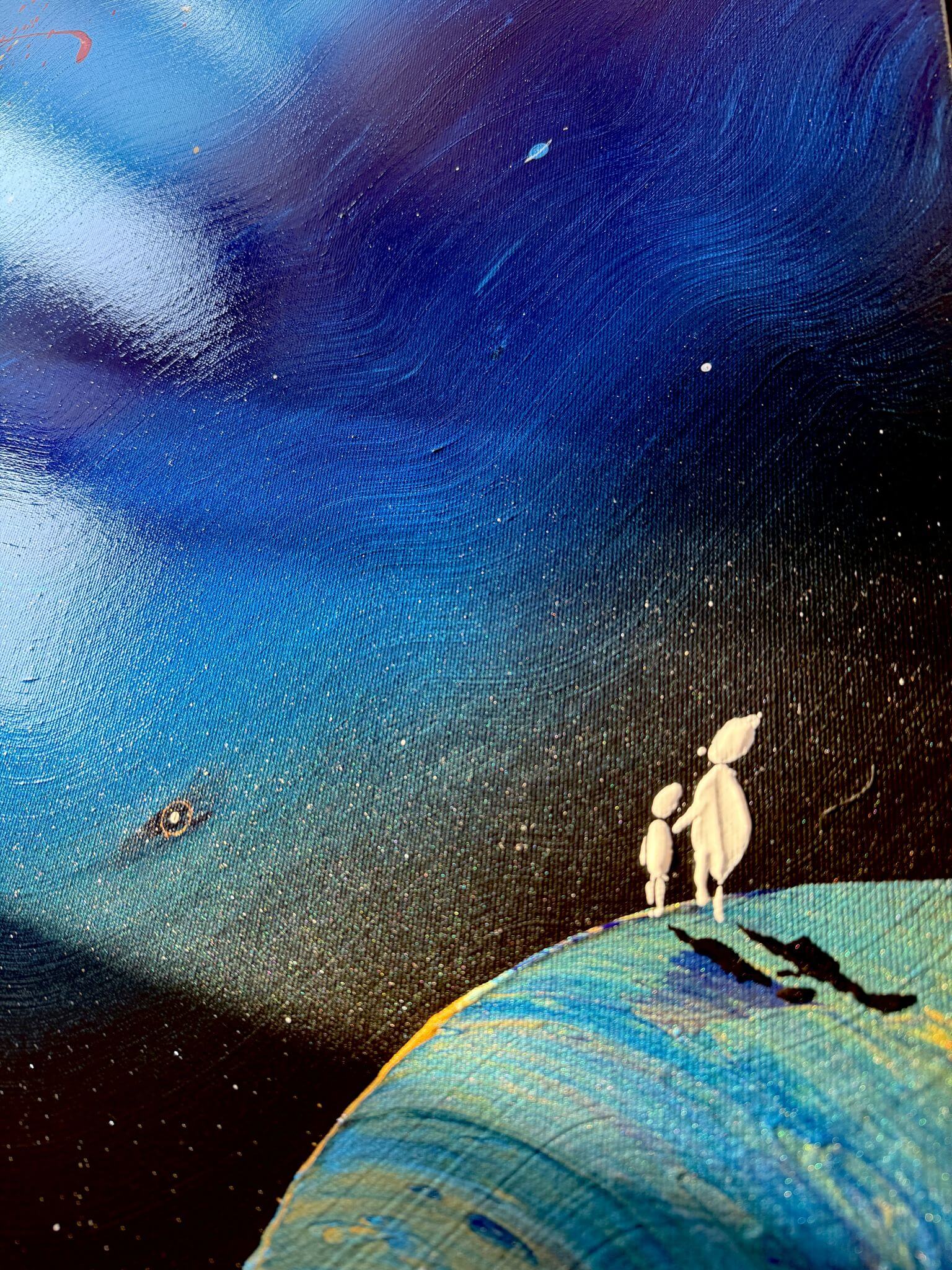 Ich habe das Malen wieder für mich entdeckt und nun sind die ersten Bilder aus der Serie „Stars“ erhältlich. Zusammen mit meiner Leidenschaft für die Sterne und das Universum entsteht beim Malen und Betrachten dieser Bilder ein großer Frieden in mir. Es war also naheliegend nicht nur Musik über die Unendlichkeit des Alls zu schreiben, sondern dieses Gefühl auch durch meine Farben und Bilder auszudrücken. Irgendwie habe ich tatsächlich sogar das Gefühl, dass diese Bilder das sind was meiner Musik noch gefehlt hat.
