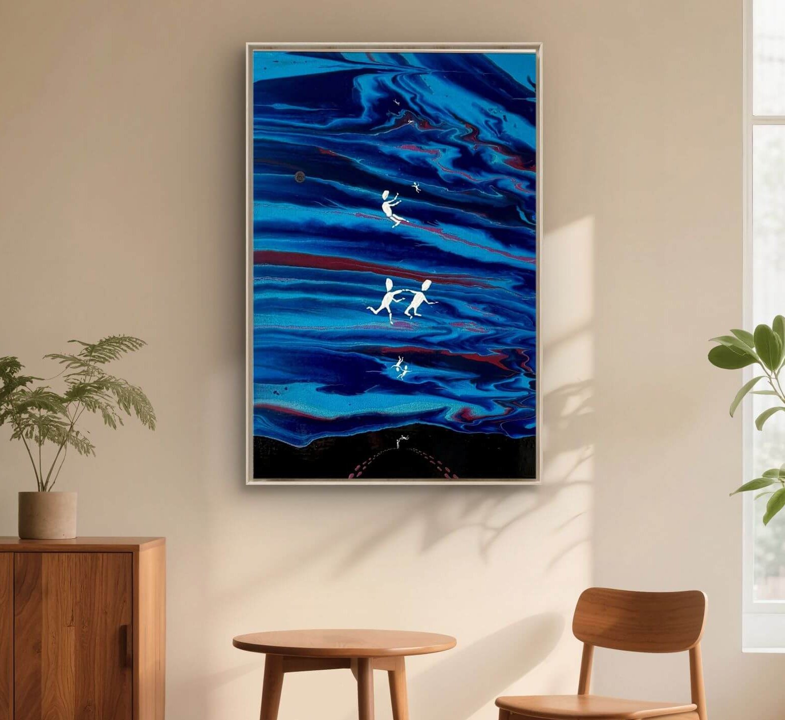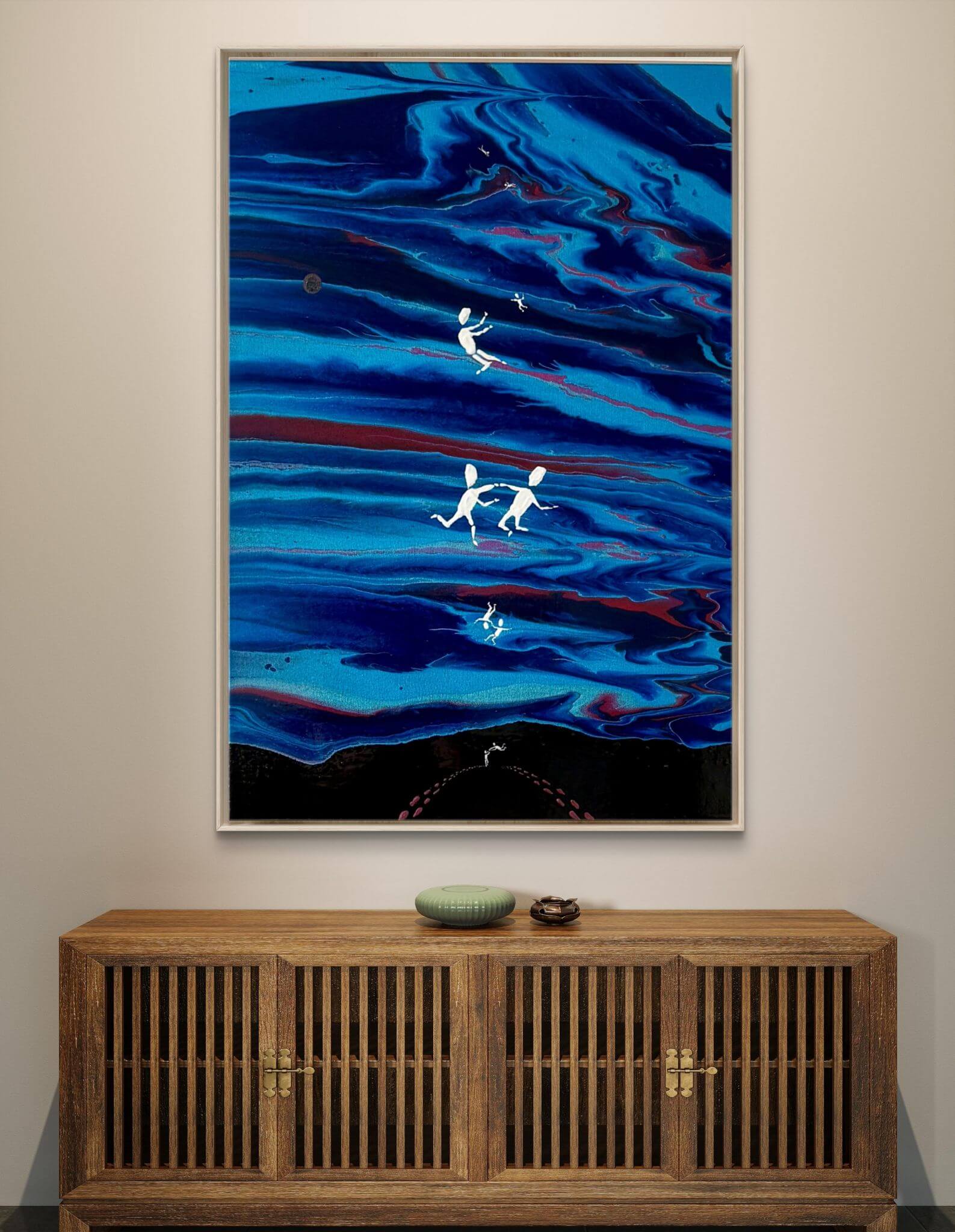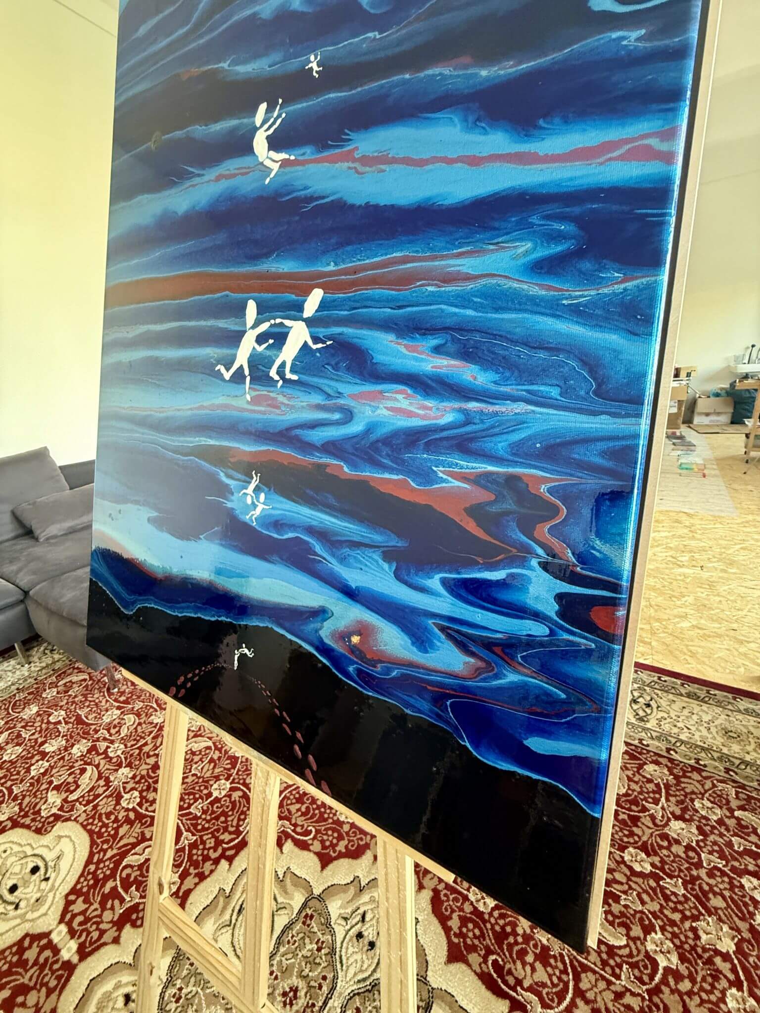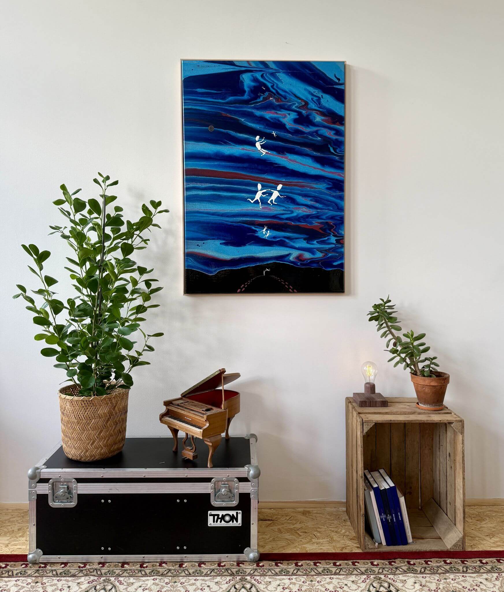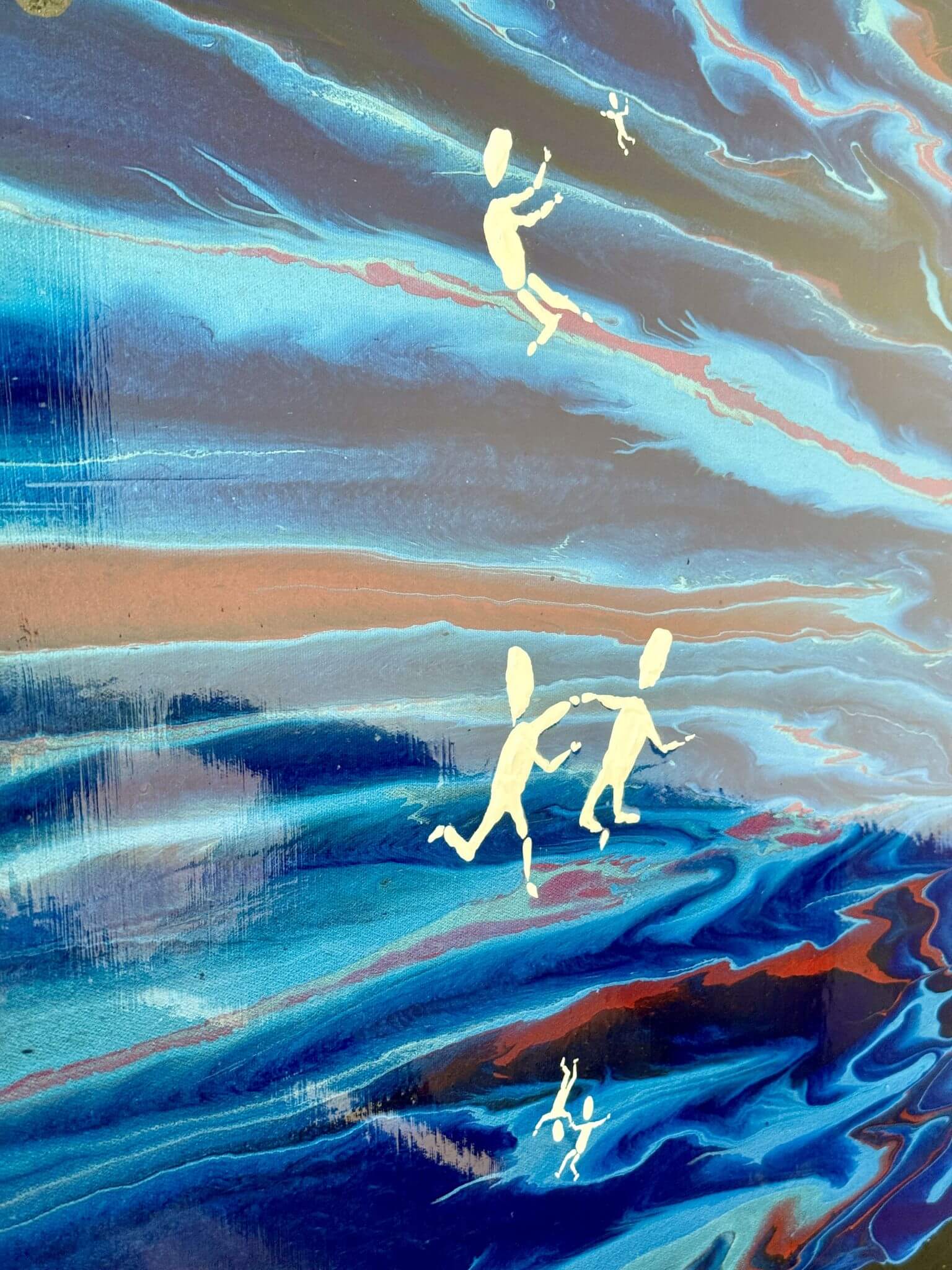 Das Werk „Together We Will Fly Forever“ (100 × 70 cm) ist in enger Verbindung zum Song „Go Fly Forever“ entstanden.